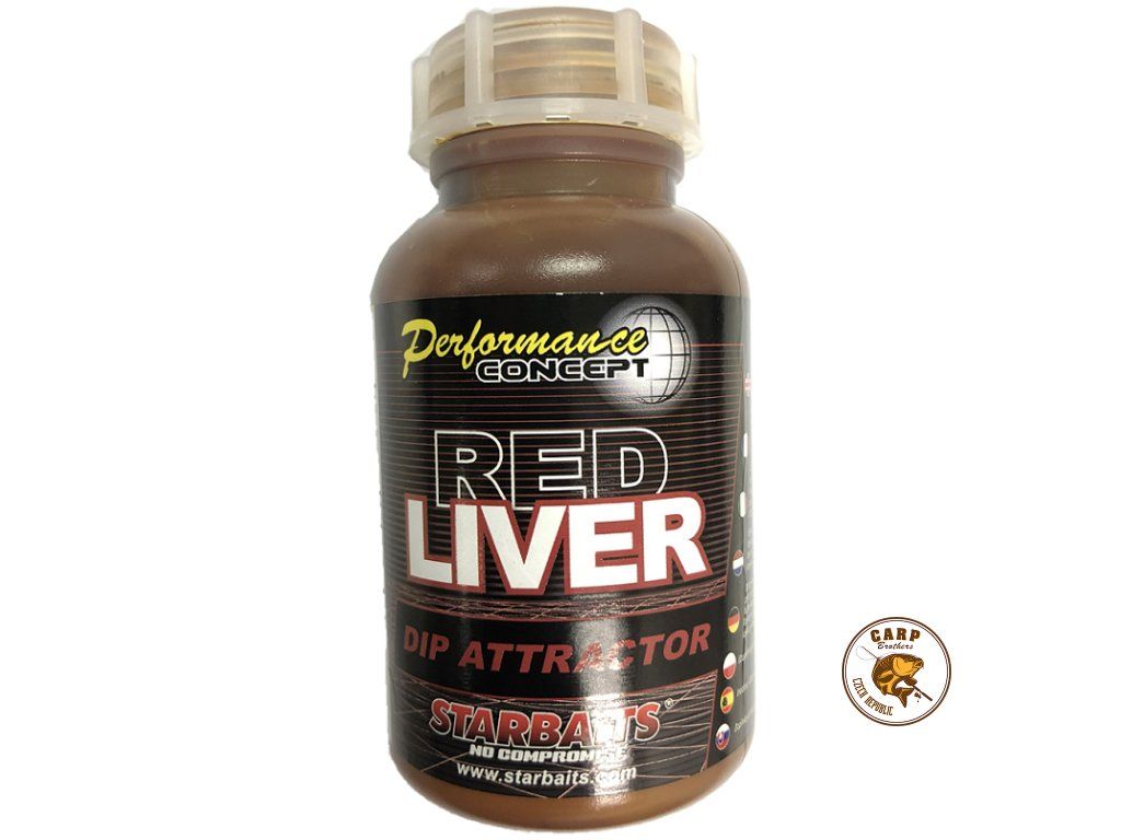 Dip zvýrazňuje pachovou a chuťovou stopu nástrahy (boilie, partikl, krmení). Nerozpouští PVA! Příchuť Red Liver.