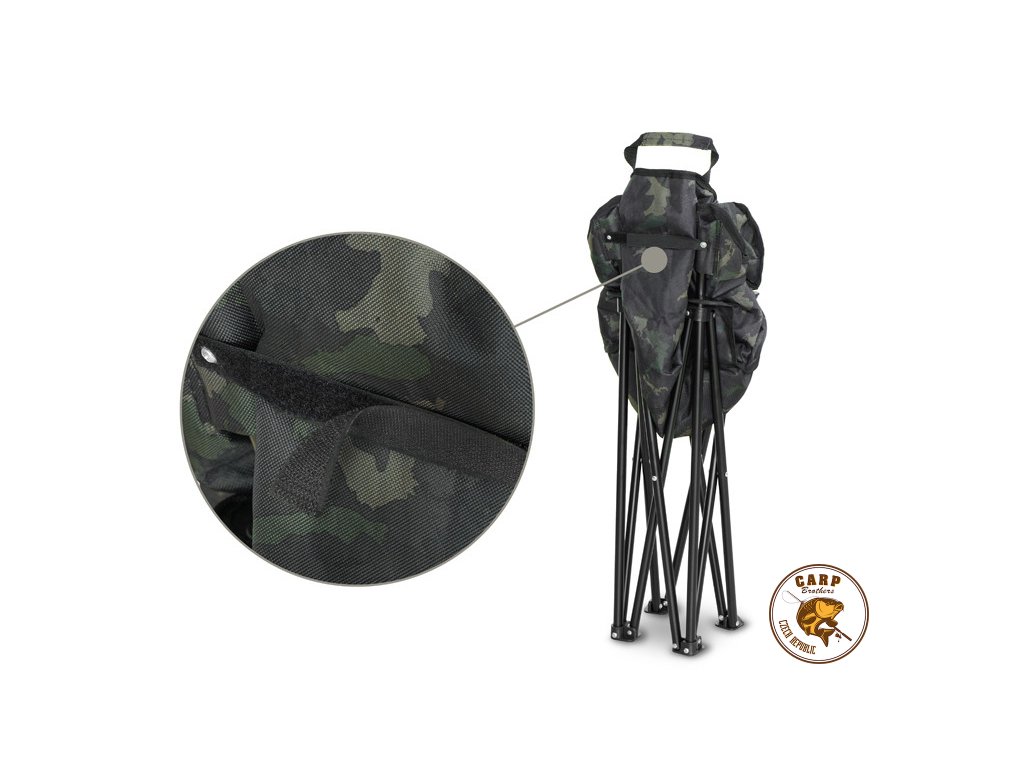 Na boku křesla se nachází praktická kapsa na odložení oblíbeného nápoje, telefonu nebo drobného příslušenství. Pro pohodlnou manipulaci během přenášení je FOLDIX vybaven praktickým úchytem ale i suchými zipy, které slouží k zafixování křesla během transportu.